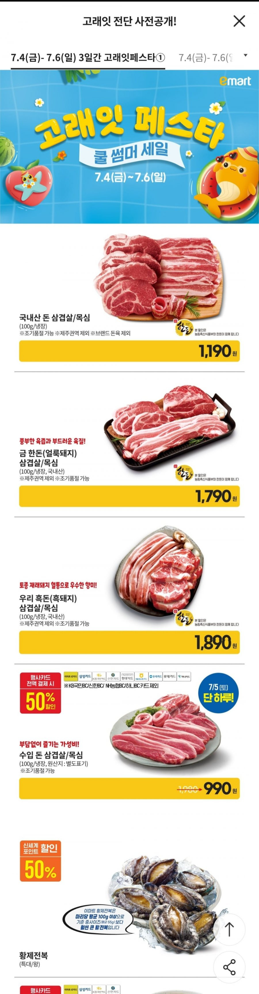 카테고리 없음 이마트 고래잇 7월 1째주 전단세일 (07/4 ~ 07/6) by Stella-Park 2025. 7. 4. 728x90 이마트 7월 세일 무더운 7월이 시작되었네요. 이마트 고래잇 세일 행사에서 득템하세요! 🔥 스텔라 PICK 👆 재래시장보다 저렴한 수입돈 50% 할인 무조건 담으세요! 728x90 공유하기 게시글 관리 STELLA는 어떻게 살까?