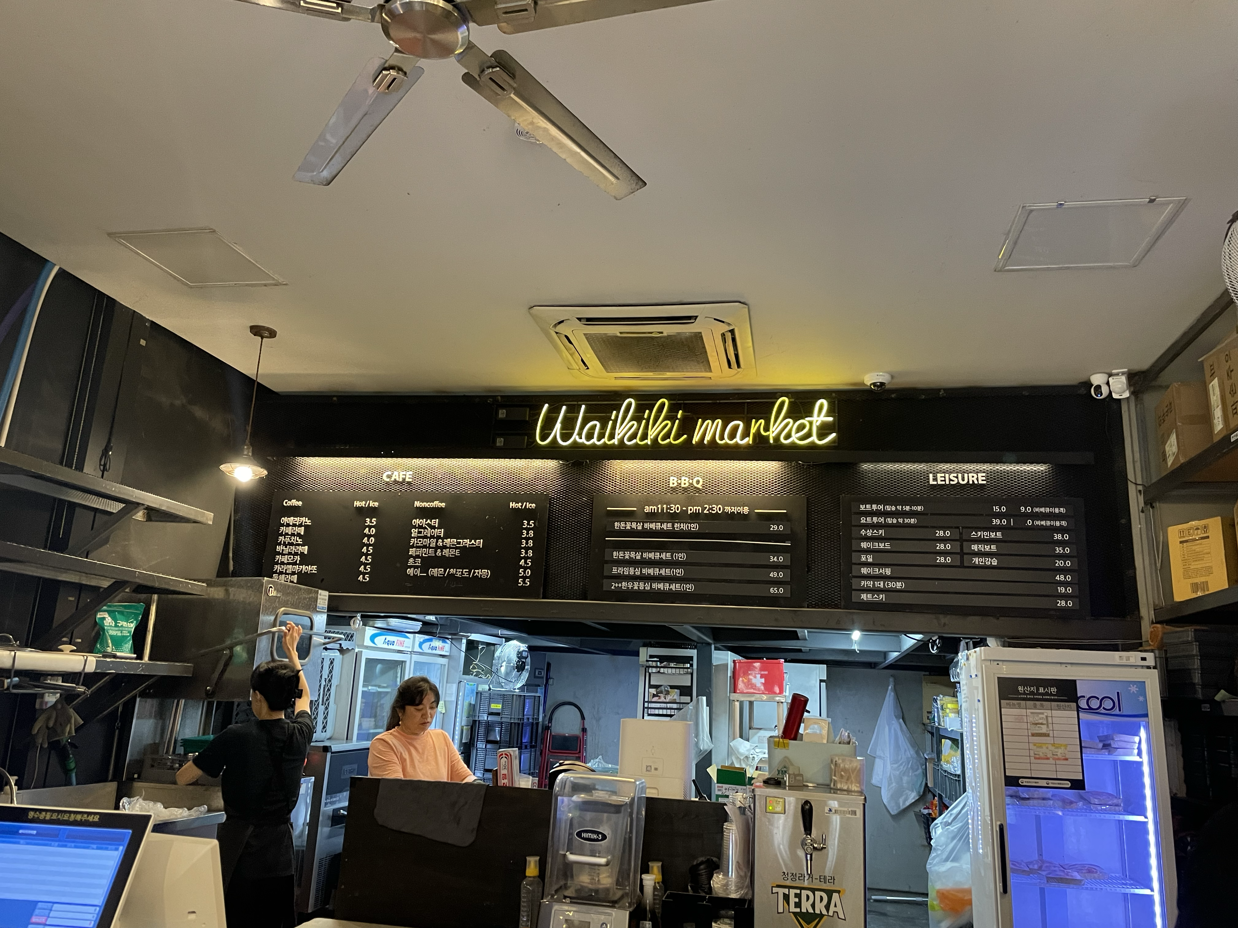 선착장 위에서 고기를 구워먹는 컨셉입니다. 선착장 안에 매점도 있어서 아이스크림, 라면, 고기 추가, 맥주 등등 구매해서 먹을 수도 있어요 ⭕️