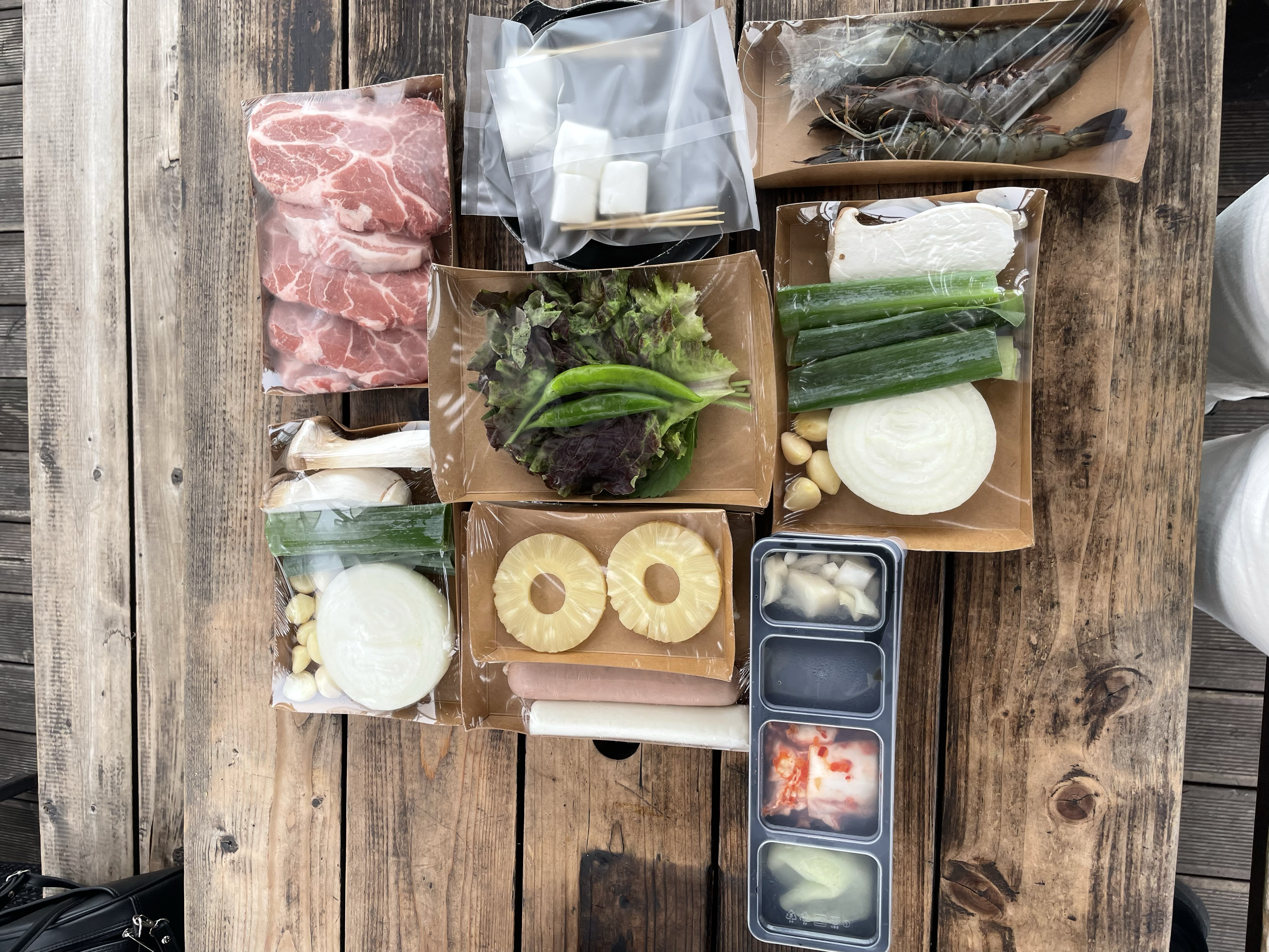 파인애플, 새우, 버섯, 쌈 채소, 쌈장까지 다 줍니다! 맛있게 구워 먹기만 하면 돼요 🥢