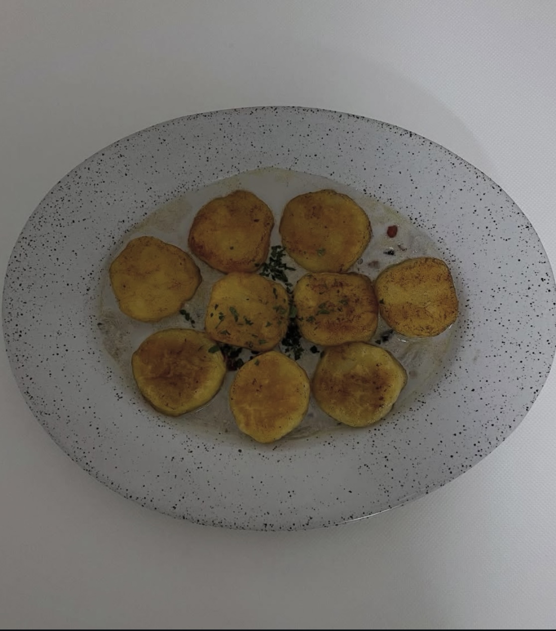 - 팬에 버터를 녹인 후, 감자 반죽을 앞뒤로 노릇하게 구운 후 접시에 잠시 대기한다.