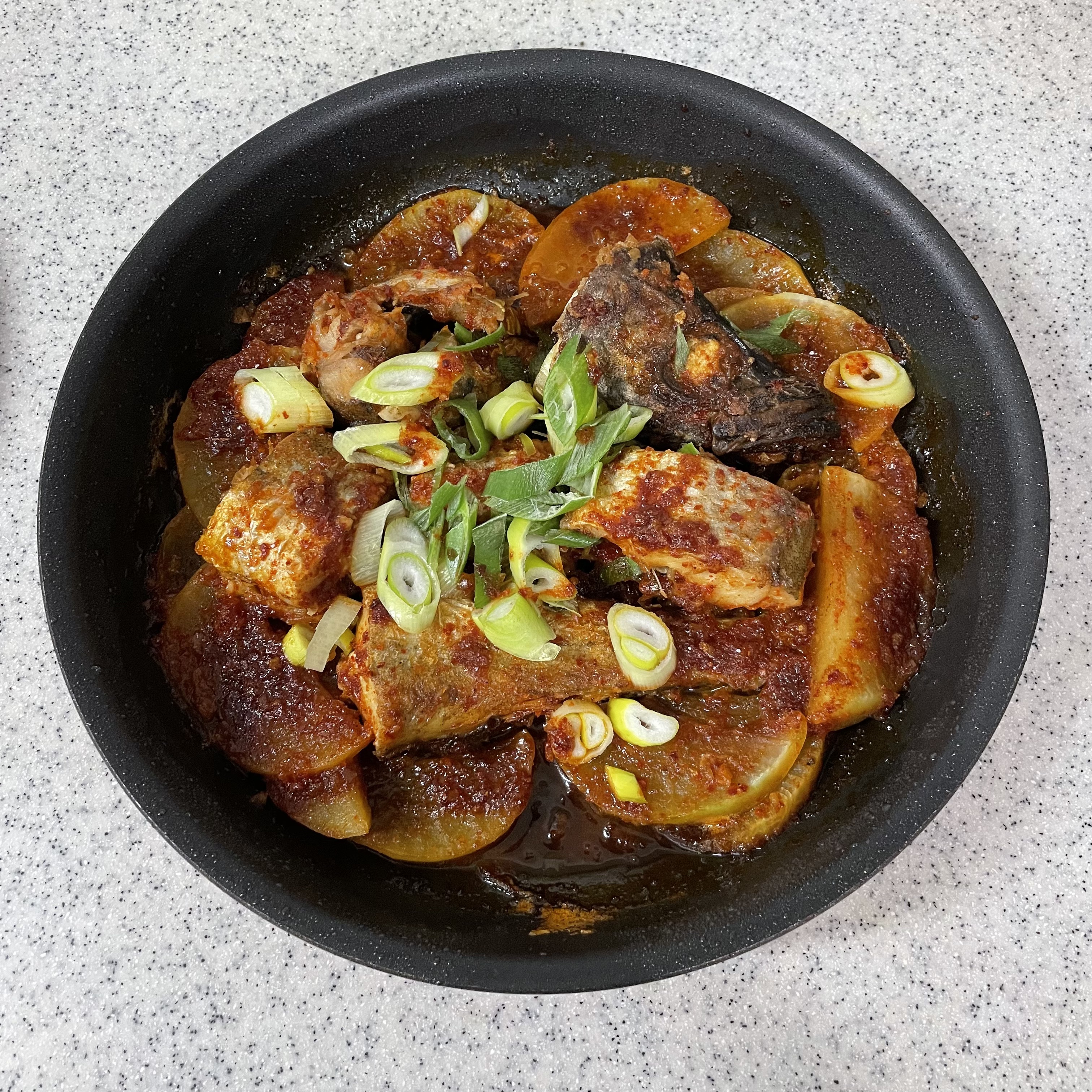 재료: 코다리 1마리, 무 5-6조각, 대파 1/2, 청양고추 반 개