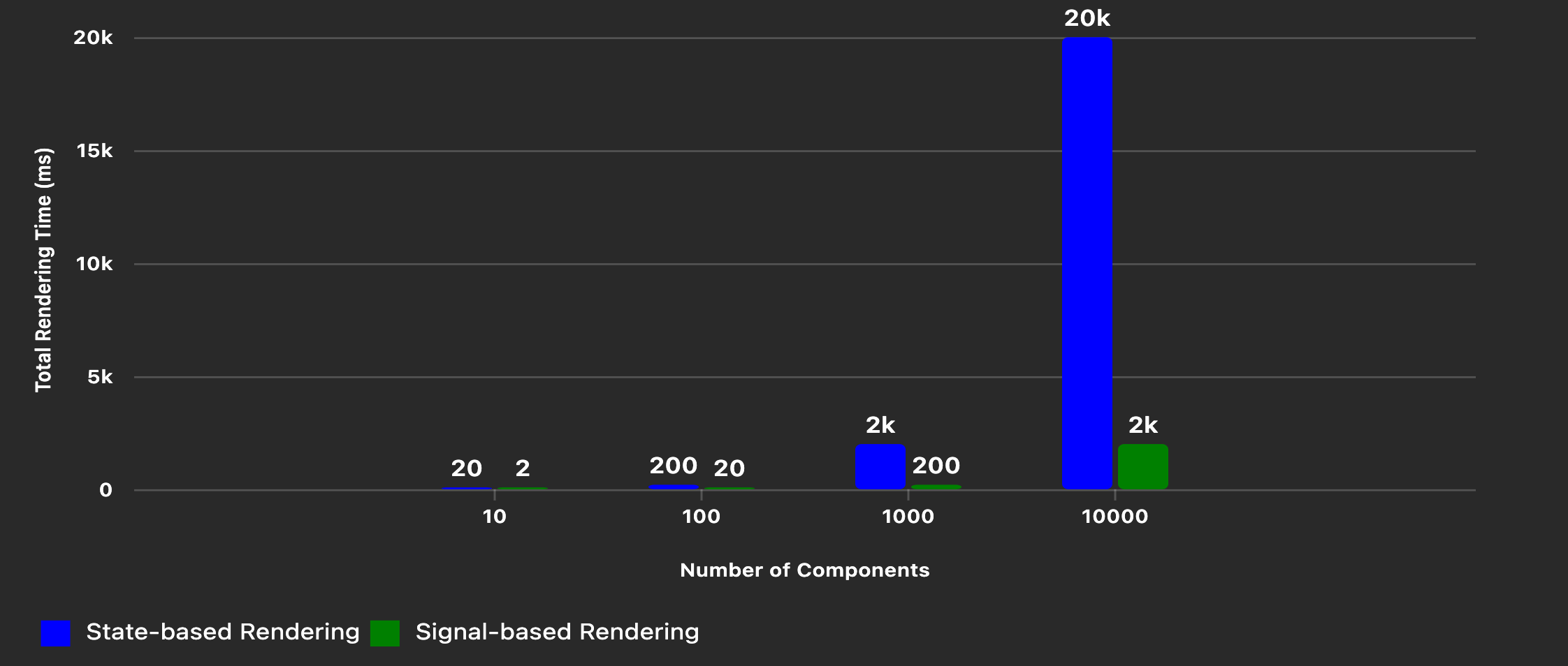 - 초록색 (Signal-based): 훨씬 낮은 렌더링 시간 유지