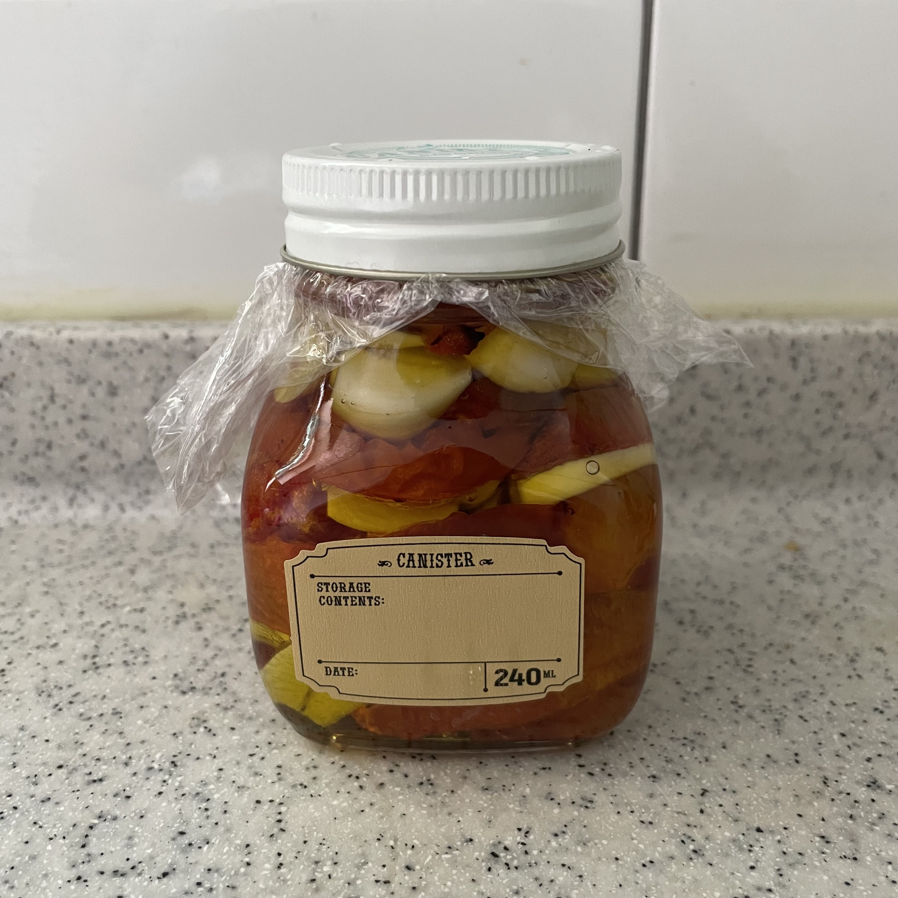 - 마지막으로 올리브유를 유리병에 잠길 정도로 부어준다. (풍미와 향을 더 극대화하려면 로즈마리나 바질을 함께 넣어주어도 좋다.)