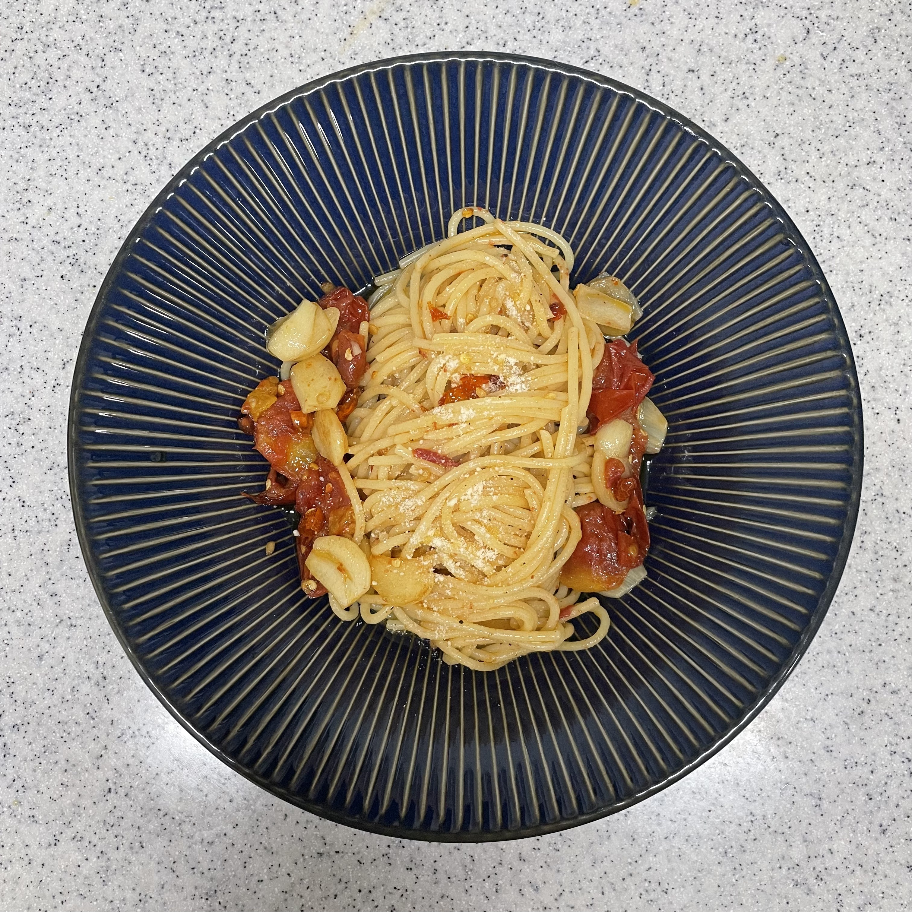 선 드라이 토마토와 올리브유, 마늘을 이용해 파스타를 만들면 올리브유를 넣어 만든 것보다 훨씬 풍미가 좋아진다.