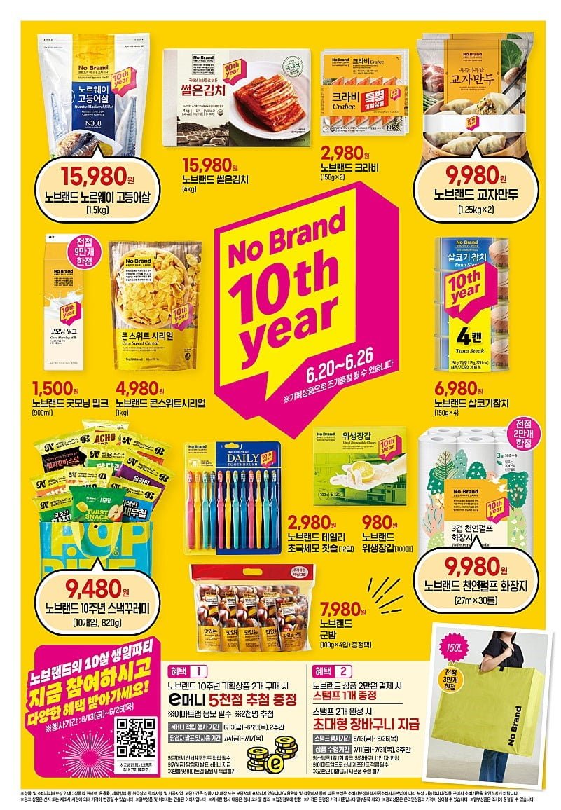 아래는 노브랜드 10주년 2차 행사(6/20~26) 주요 품목의 행사 전(정상) 가격과 행사 가격을 비교한 표입니다.