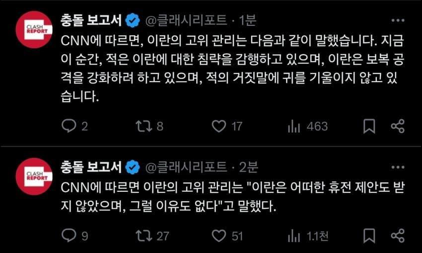 하지만 이란 정부는 휴전 제안을 받은 적이 없다고 밝혔으며, 공식적인 휴전 확정 여부는 아직 불확실합니다.